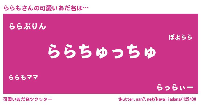 | 女子向けラノベタイトル風あだ名 | 『ららも恋絵巻』『ららもは平凡を望む』 |