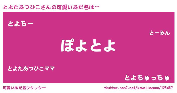 | ヘコむあだ名 | 『酢こんぶ』『とよたあつひこ(笑)』 |