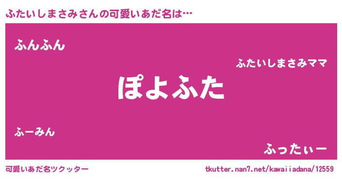 | 恥ずかしいあだ名 | 『プリティーふたいしまさみ』『ふたちん』 |