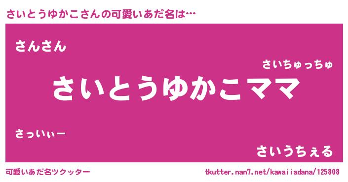 | 意味不明あだ名 | 『永久保存さいとうゆかこ』 |