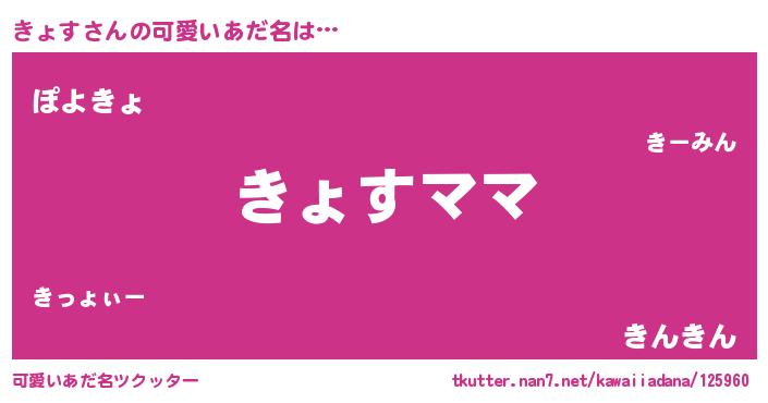| 恥ずかしいあだ名 | 『きょちん』『プリティーきょす』 |