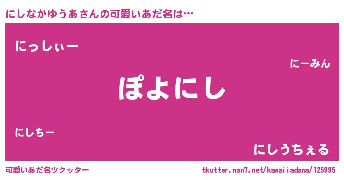 | ポケモン風あだ名 | 『ニーシイ』『ヒニシナカユウア』 |