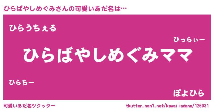 | 意味不明あだ名 | 『永久保存ひらばやしめぐみ』 |