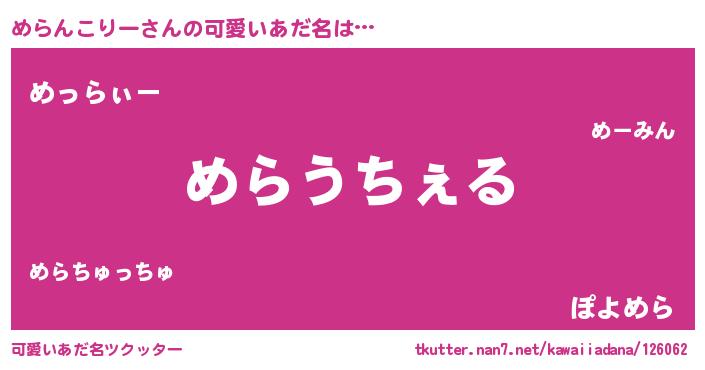 | 意味不明あだ名 | 『自称めらんこりー』 |