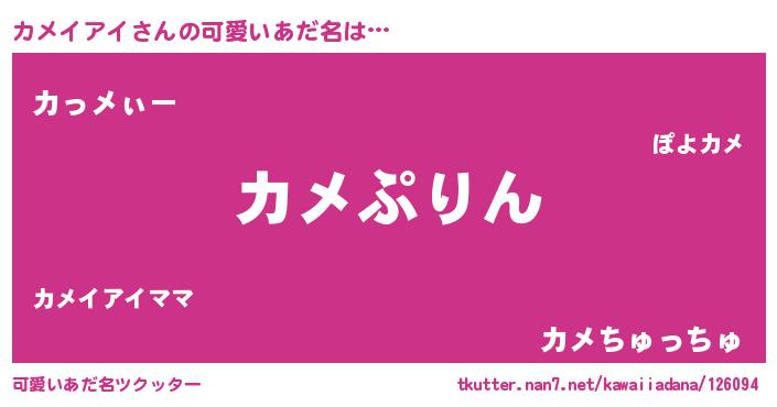 | 女子向けラノベタイトル風あだ名 | 『カメイアイの玉の輿計画!』 |
