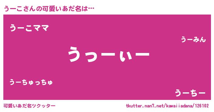 | 男性向けラノベタイトル風あだ名 | 『うーこの嫁は女の子じゃないと思った?』 |