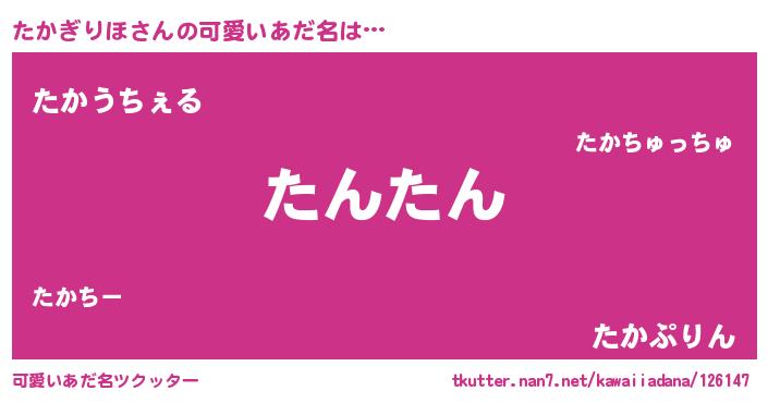 | 恥ずかしいあだ名 | 『プリティーたかぎりほ』『たかっちょ』 |