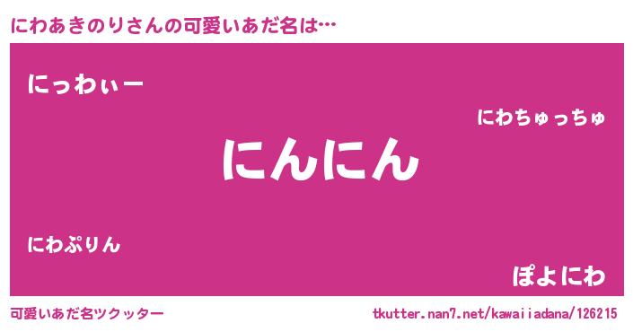 | 恥ずかしいあだ名 | 『プリティーにわあきのり』『にわちん』 |