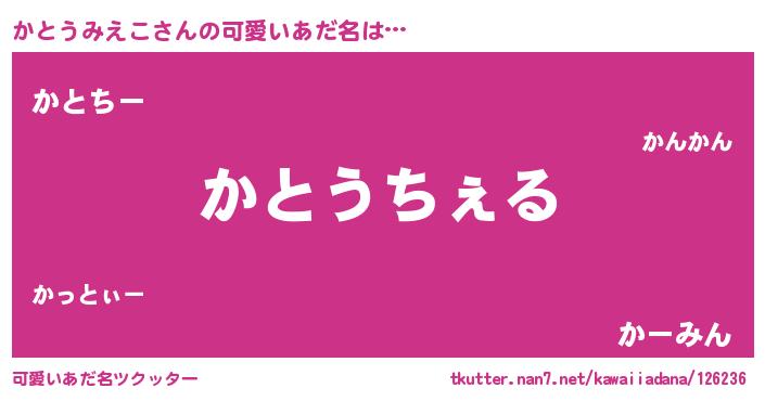 | 恥ずかしいあだ名 | 『カトウミエコデラックス』『かとっちょ』 |