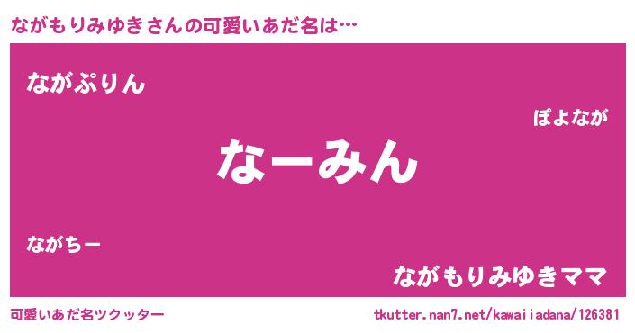 | ヘコむあだ名 | 『ながもりみゆき(笑)』『なまこ酢』 |