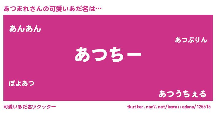 | 恥ずかしいあだ名 | 『あつっちょ』『プリティーあつまれ』 |
