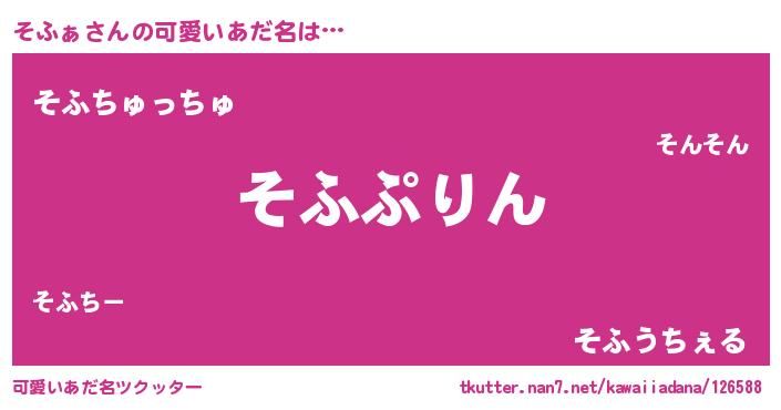 | 女子向けラノベタイトル風あだ名 | 『そふぁの玉の輿計画!』『そふぁ恋絵巻』 |