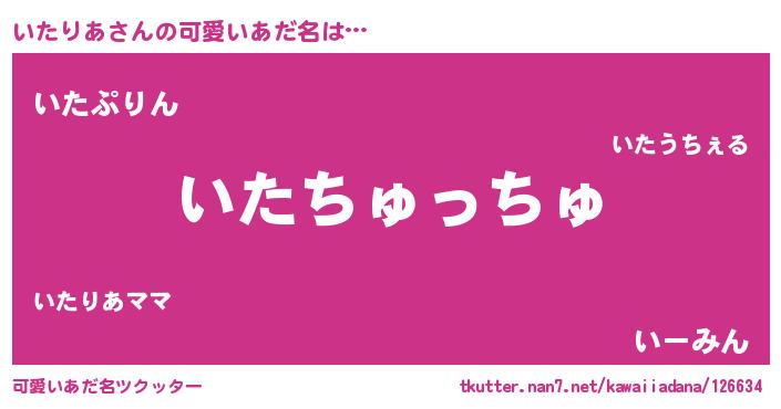 | 男性向けラノベタイトル風あだ名 | 『はたらくいたりあさま!』 |