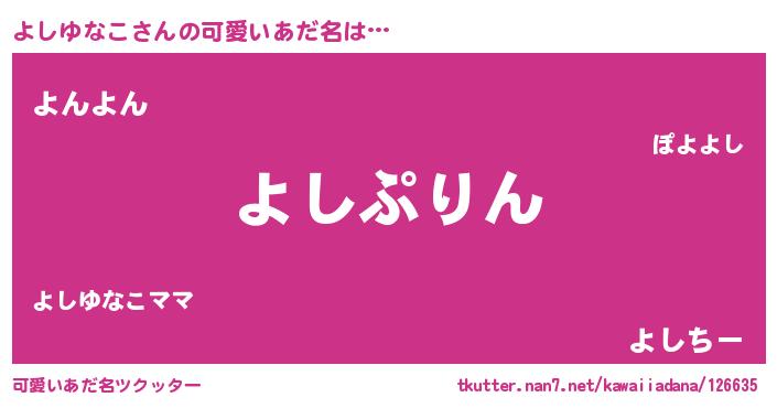 | 男性向けラノベタイトル風あだ名 | 『よしゆなこ~年齢イコール彼女いない歴の魔法使い~』 |