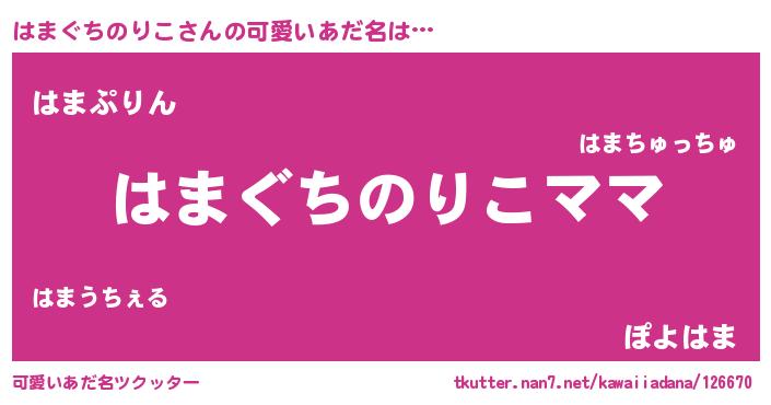 | ヒーロー風カッコイイあだ名 | 『ネオハマグチノリコ』『仮面ハマダー』 |