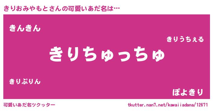| ヘコむあだ名 | 『きりにゅー』『きりっ子』 |