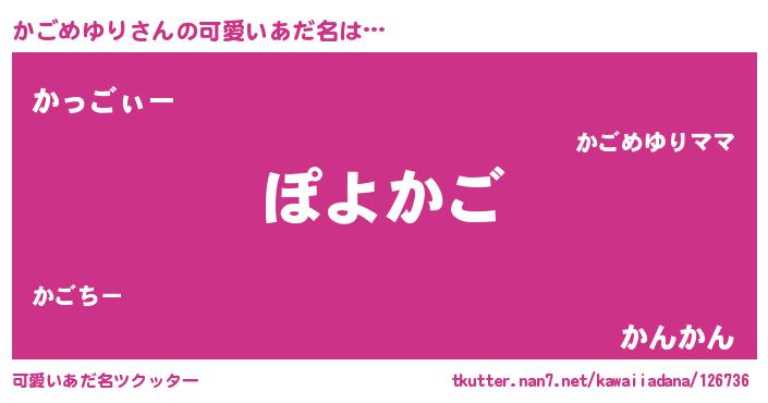 | 恥ずかしいあだ名 | 『カゴリンリン』『プリティーかごめゆり』 |
