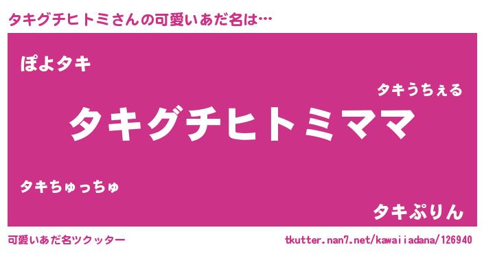 | ヘコむあだ名 | 『タキグチヒトミ(震え声)』『タキにゅー』 |