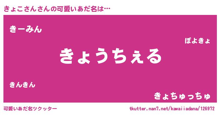 | 意味不明あだ名 | 『自称きょこさん』『ペロリンきょこさん』 |
