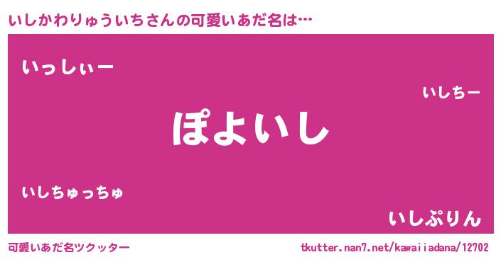 | 男性向けラノベタイトル風あだ名 | 『この素晴らしい世界にいしかわりゅういちを!』 |