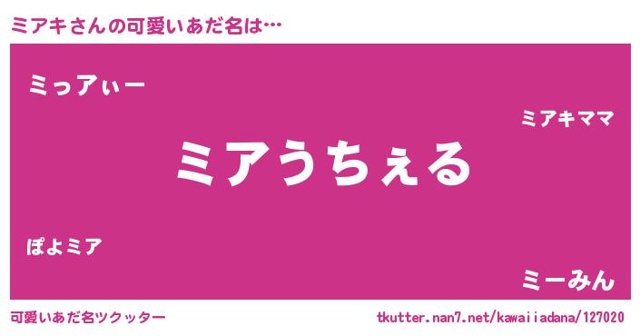 | ヘコむあだ名 | 『ミアっちょ』『ミアキ(小並感)』 |