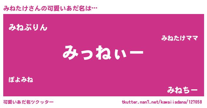 | 意味不明あだ名 | 『とにかく怪しいみねたけ』 |