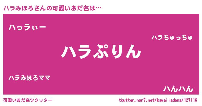 | ヘコむあだ名 | 『ハラっ子』『ハラっふぃ~』 |