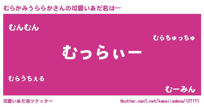 | 意味不明あだ名 | 『とにかく怪しいむらかみうららか』 |