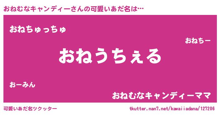 | 男性向けラノベタイトル風あだ名 | 『Re:おねむなキャンディーから始める異世界生活』 |
