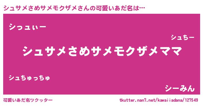 | 意味不明あだ名 | 『永久保存シュサメさめサメモクザメ』 |