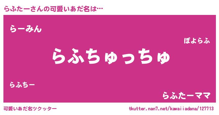 | ヘコむあだ名 | 『らふたー(爆)』『豆乳』『らふお』 |
