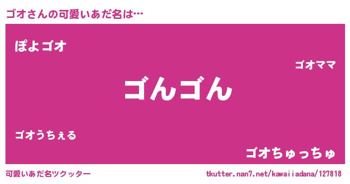 | 自動車の名前っぽいあだ名 | 『ゴオティマ』『ポゴシェ』『ゴンR』 |