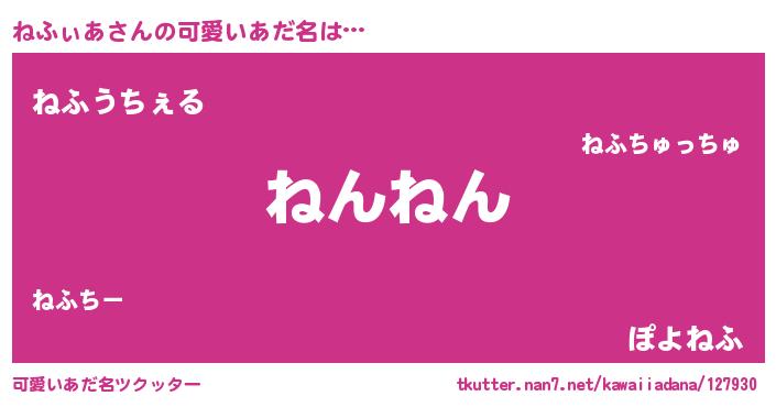 | 意味不明あだ名 | 『ペロリンねふぃあ』『自称ねふぃあ』 |