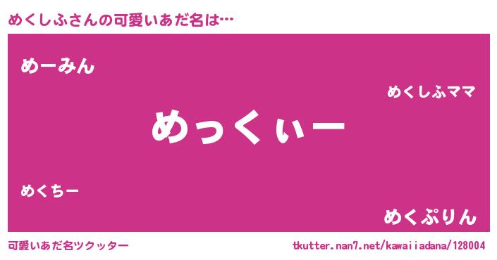| ヘコむあだ名 | 『めくっちょ』『めくしふ(苦笑)』 |