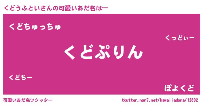 | ヘコむあだ名 | 『くどっぺ』『豆乳』『くどにー』 |