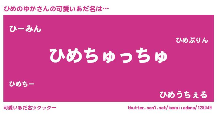 | ヒーロー風カッコイイあだ名 | 『慈愛の使者ひめのゆか』『炎刃騎士ヒメ』 |