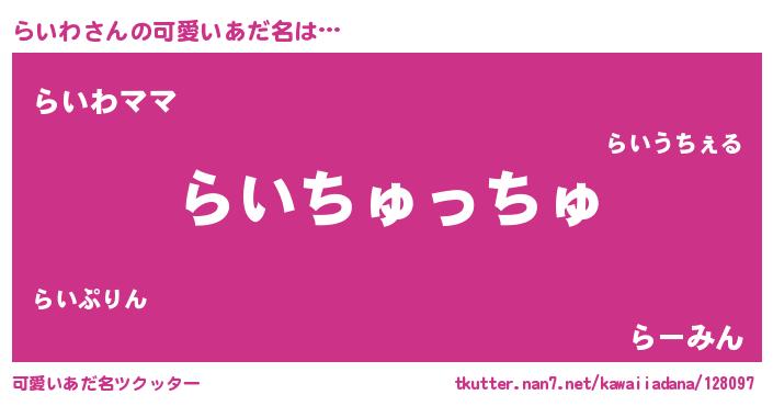 | ヘコむあだ名 | 『らいわ(笑)』『つくし』『らいっぺ』 |