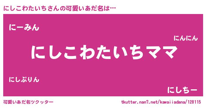 | 意味不明あだ名 | 『永久保存にしこわたいち』 |
