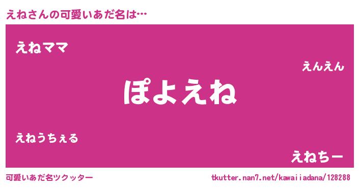 | 意味不明あだ名 | 『住所不定無職えね(6歳)』『永久保存えね』 |