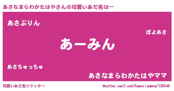 | 男性向けラノベタイトル風あだ名 | 『うちのあさなまらわかたはやが世界を掌握している!』 |