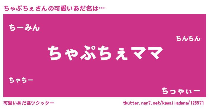 | 女子向けラノベタイトル風あだ名 | 『異世界で失敗しない100のちゃぷちぇ』 |