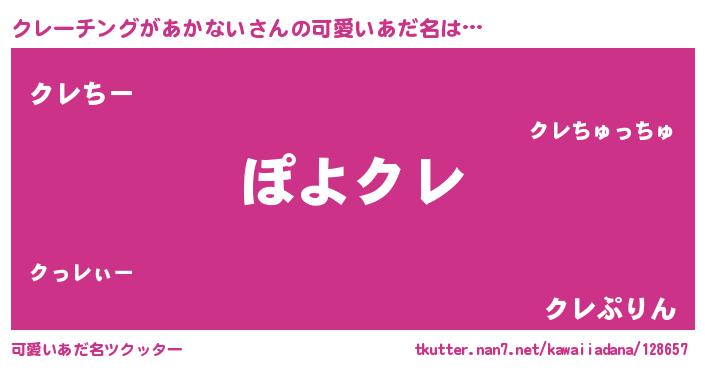 | 意味不明あだ名 | 『住所不定無職クレーチングがあかない(3歳)』 |