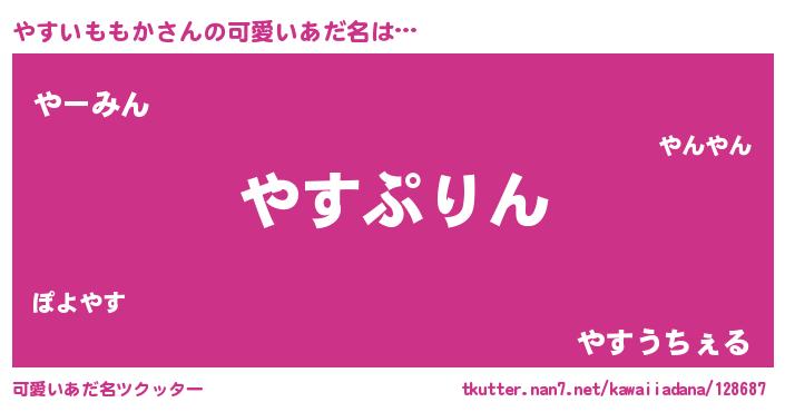 | 男性向けラノベタイトル風あだ名 | 『やすいももか~年齢イコール彼女いない歴の魔法使い~』 |