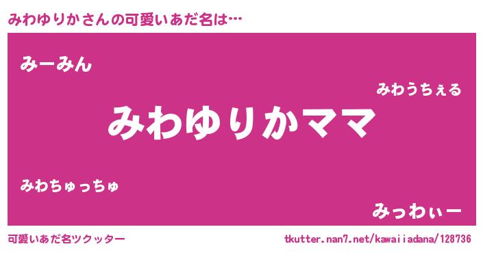 | 意味不明あだ名 | 『永久保存みわゆりか』『自称みわゆりか』 |