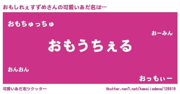 | 男性向けラノベタイトル風あだ名 | 『Re:おもしれぇすずめから始める異世界生活』 |