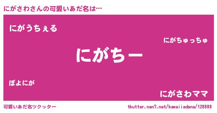 | 女子向けラノベタイトル風あだ名 | 『にがさわの雑貨屋さん』『闇のにがさわ』 |