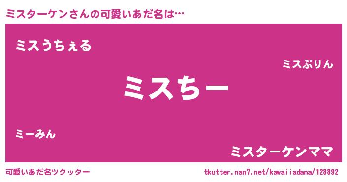 | ヘコむあだ名 | 『酢こんぶ』『ミスターケン(爆)』 |