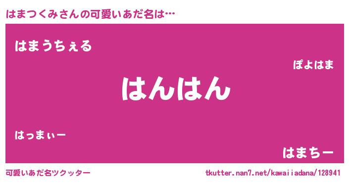 | 意味不明あだ名 | 『ペロリンはまつくみ』『自称はまつくみ』 |