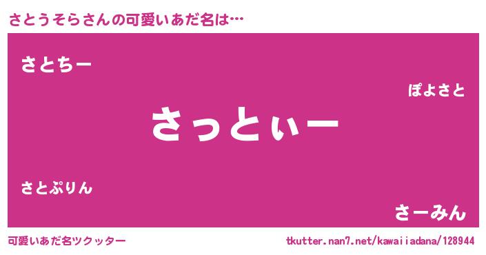 | ポケモン風あだ名 | 『ヒサトウソラ』『サトウダネ』 |