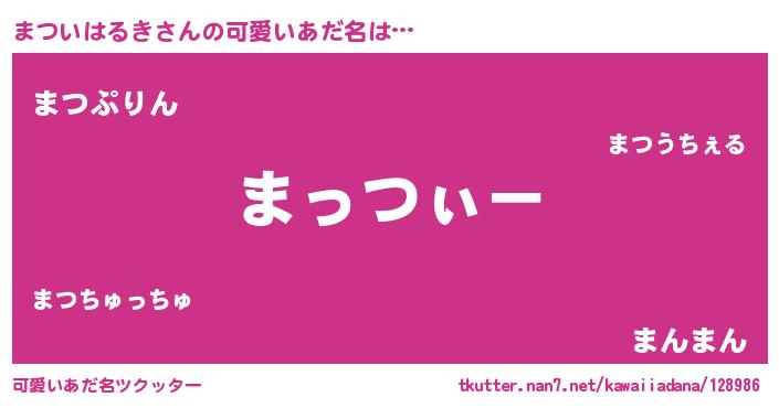 | 意味不明あだ名 | 『とにかく怪しいまついはるき』 |